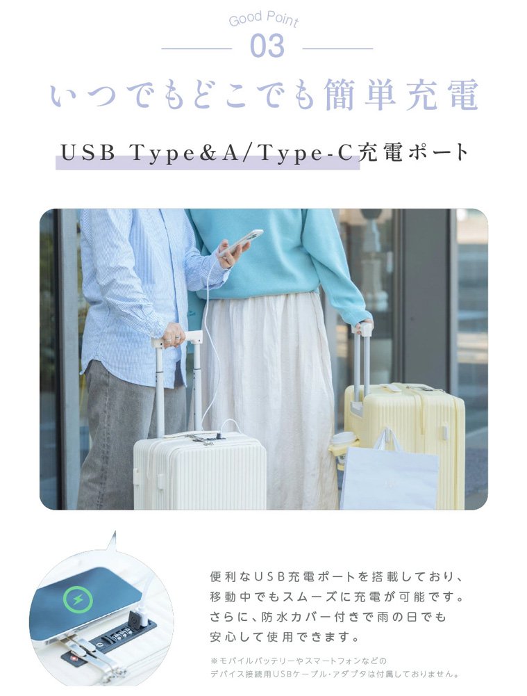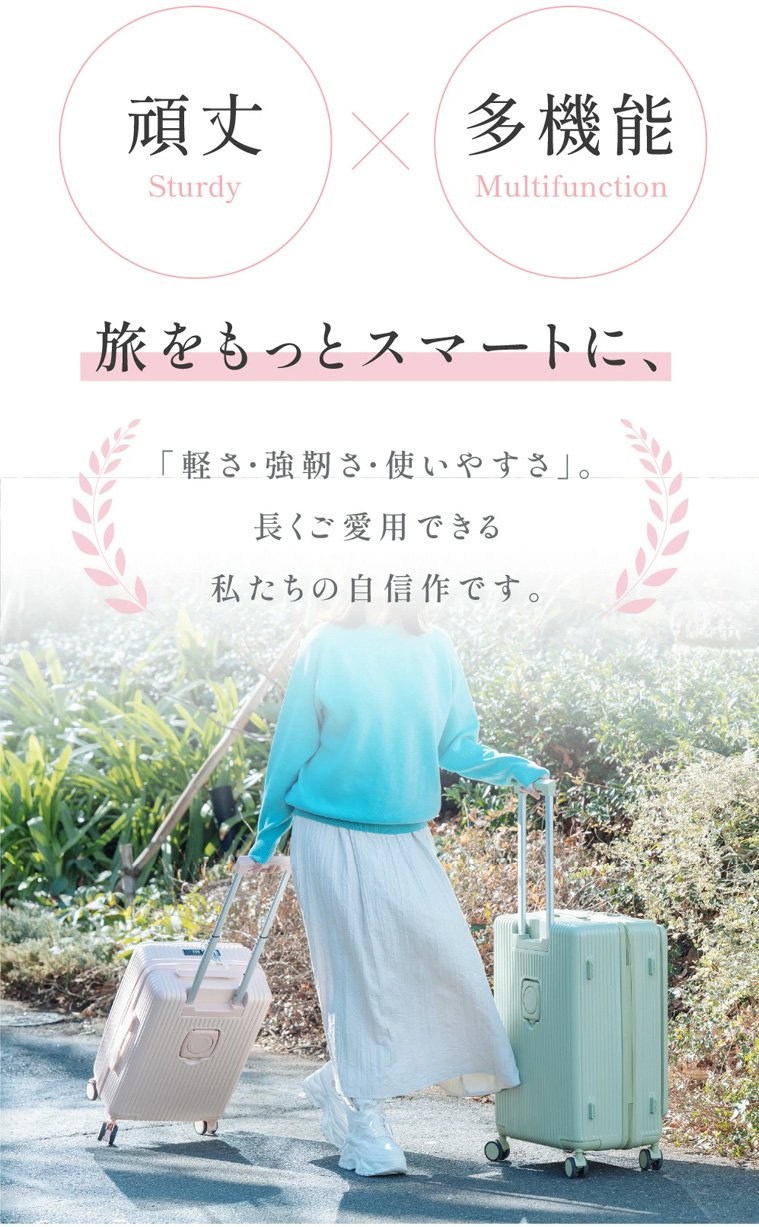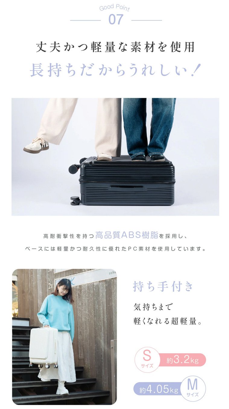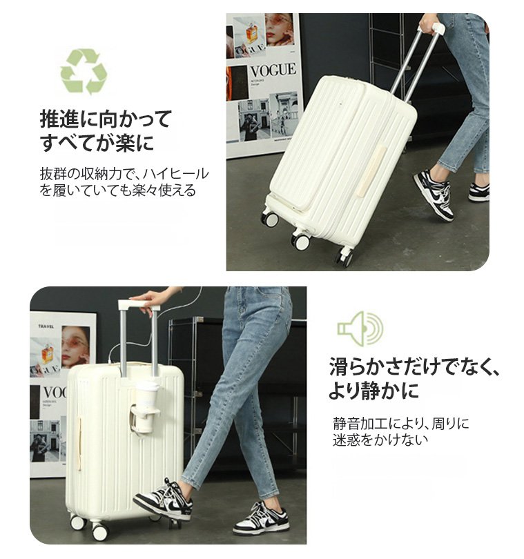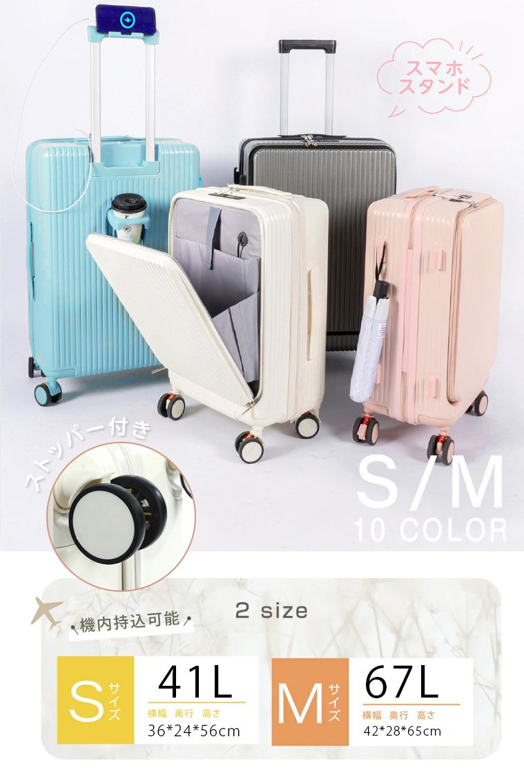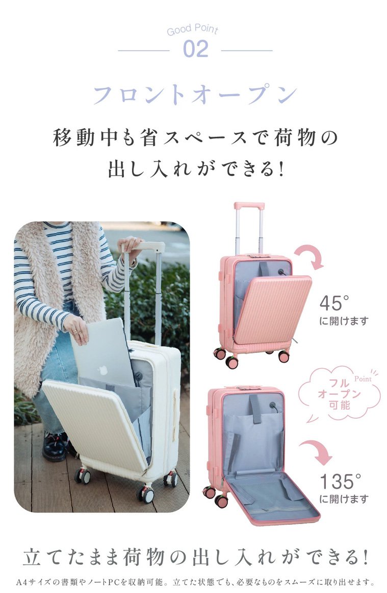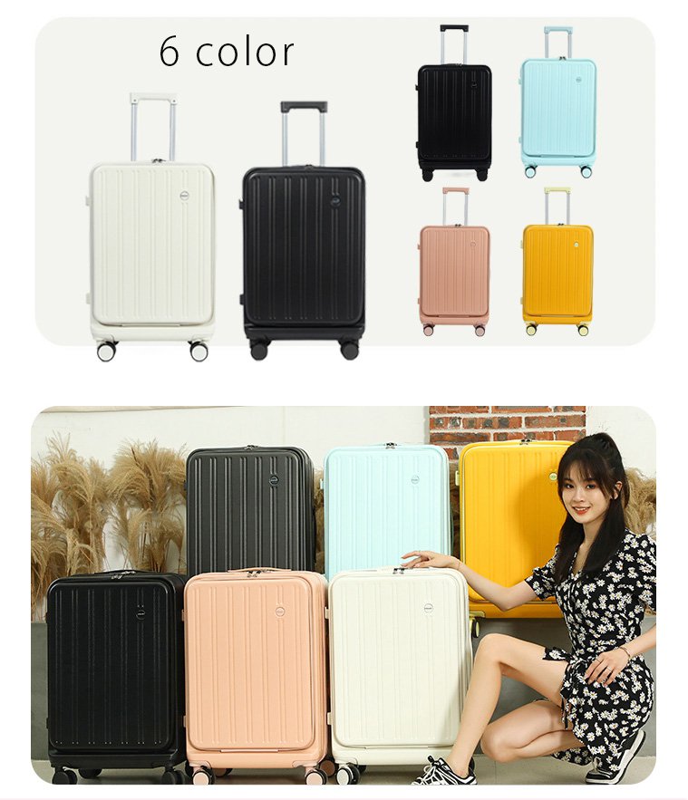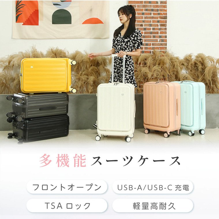 フロントオープンUSBポート付き多機能超軽量スーツケース