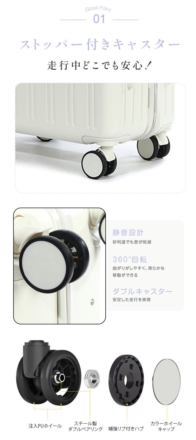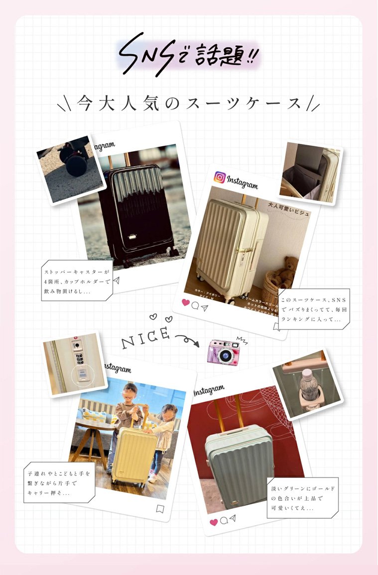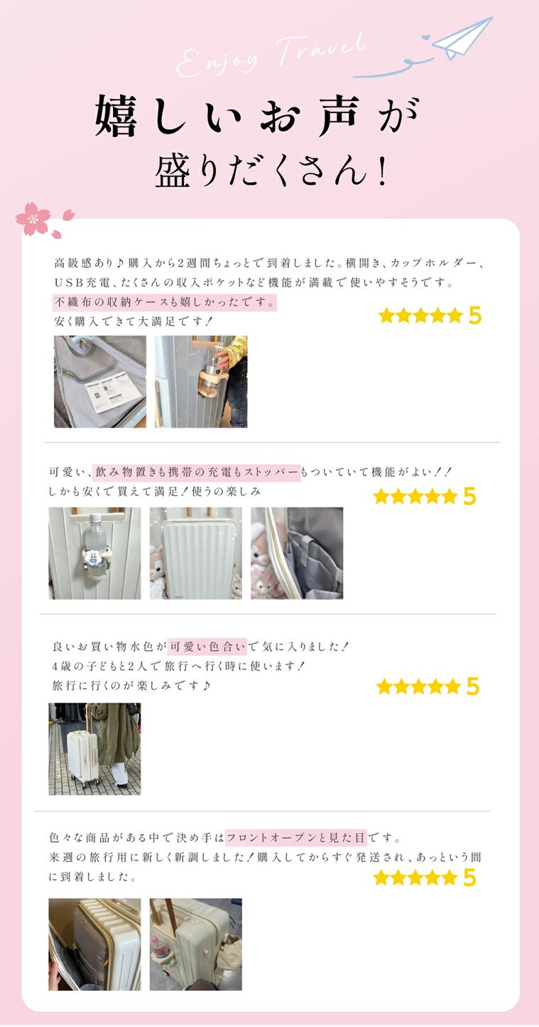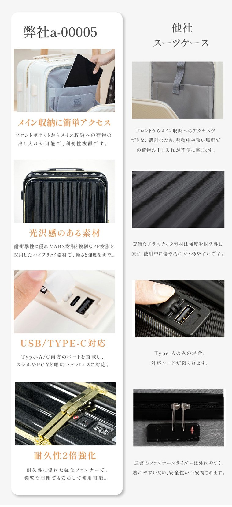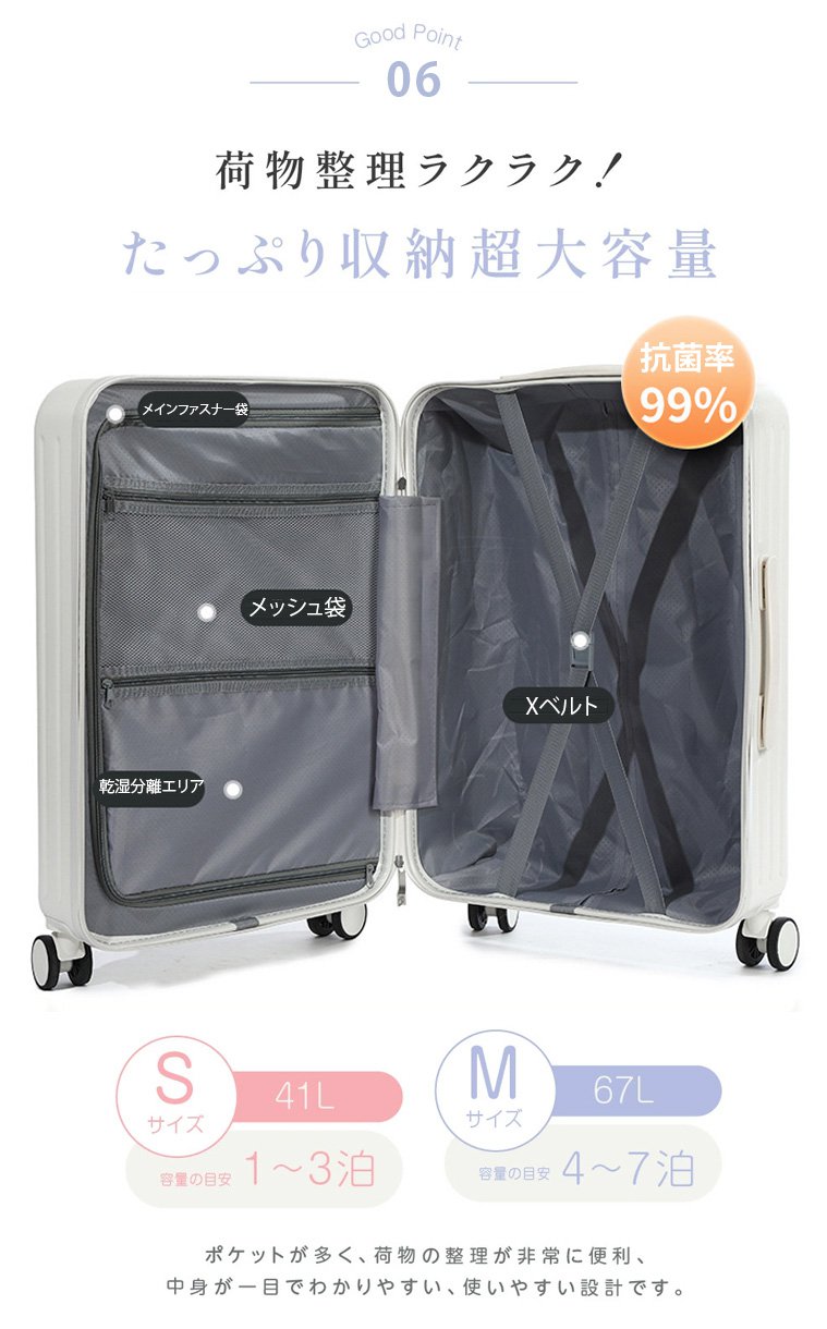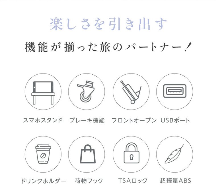 フロントオープンUSBポート付き多機能超軽量スーツケース